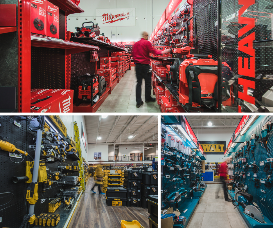 Ask our specialized advisors about the latest Milwaukee, Dewalt, Makita, and Bosch tools available on-site.